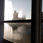 窓の朝露に照らされて一枚