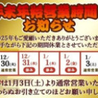 年末年始のお知らせです