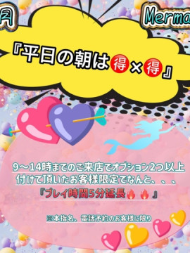 平日9時~14時迄のご来店限定でオプション2個以上付けて頂いたお客様は5分延長!!!