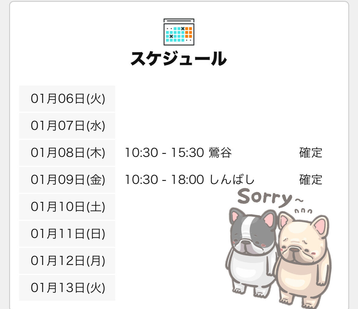 木曜日の日暮里と金曜日の新橋のみ