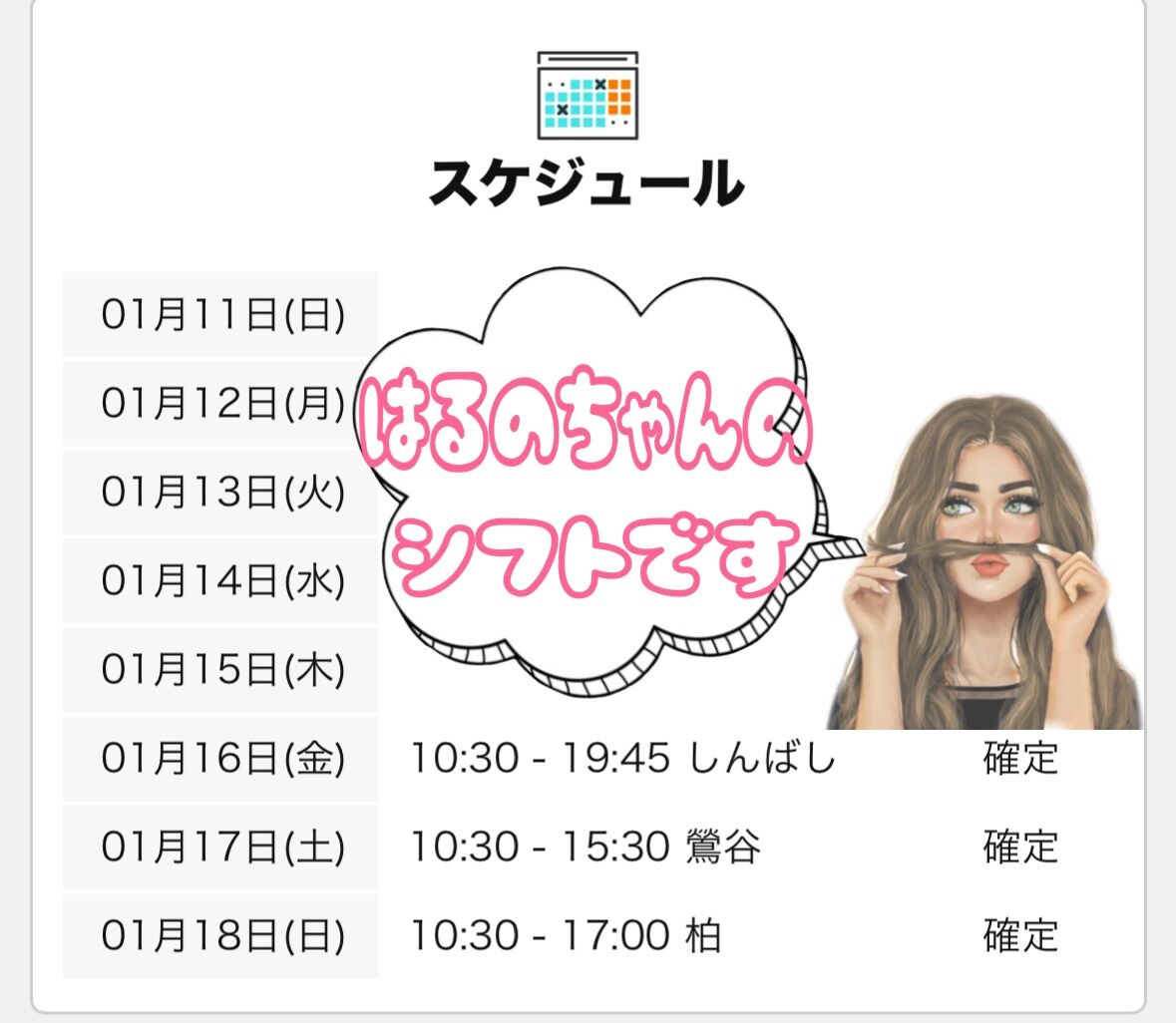 今日はシフトのお知らせだけしたかったので