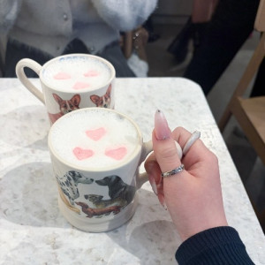 中目黒行ってきた!とっても寒かったからカフェにずっといたんだ〜この犬のマグとネイルが可愛くて写真撮った🐶💗