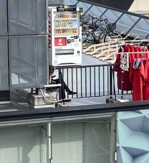 屋上でマルハンのコートが干されてました
