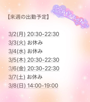 🌸来週の出勤予定🌸