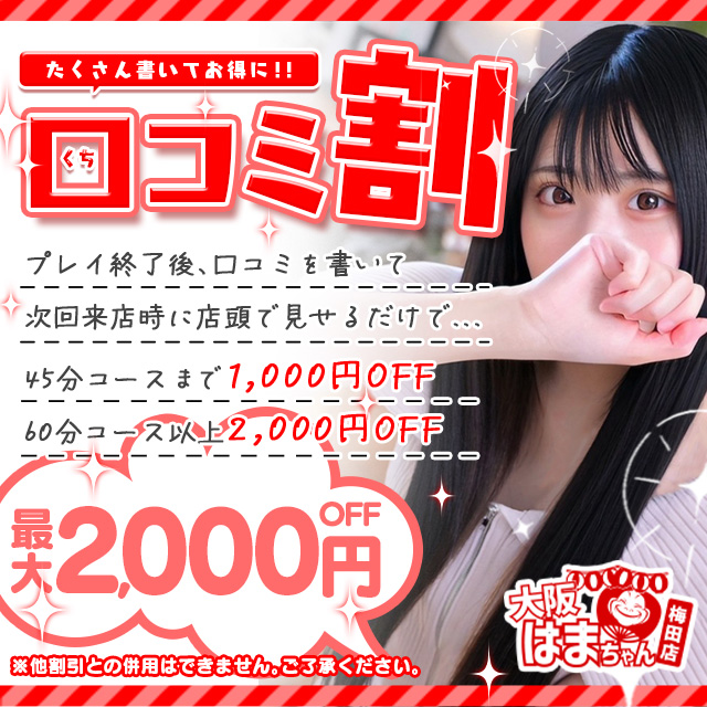 口コミ特典がパワーアップしちゃいましたっ!/手こき&オナクラ 大阪はまちゃん