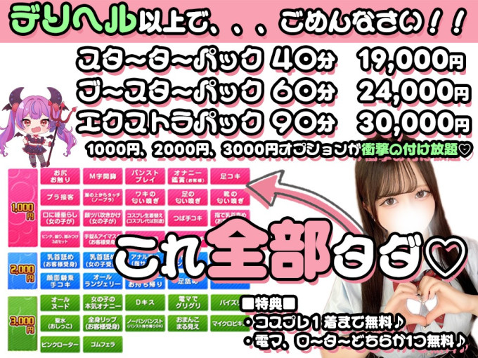 (コスプレ、電マ、ローターご希望の際はご予約時にお伝えください)