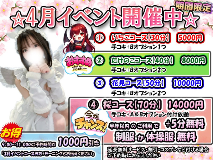ご予約の際は『4月イベントコースを見た』とお伝えください