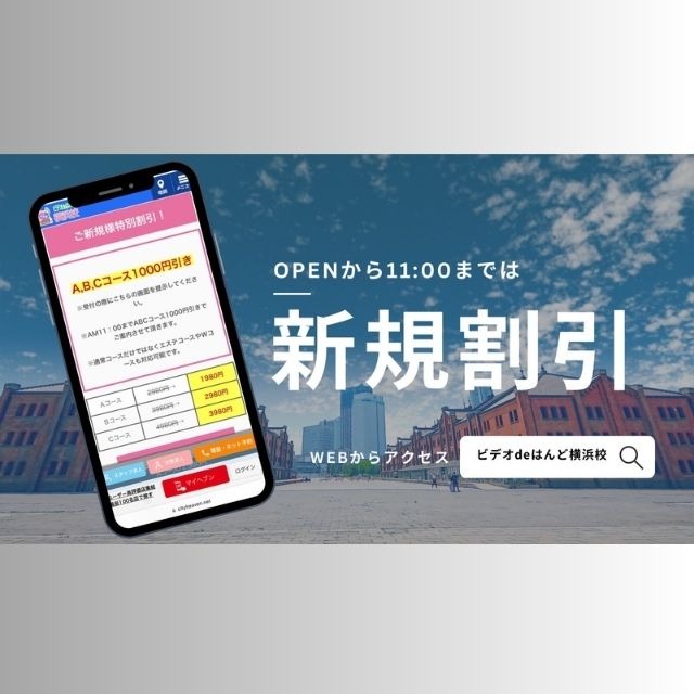 オープンから11時までは全コース1000円割引!!/ビデオdeはんど 横浜校