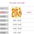 | 営業時間 | 9:00~翌6:00 (予約受付24時間対応) |